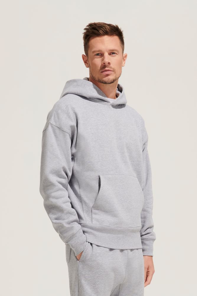 Худи унисекс со спущенным плечом и карманом-кенгуру.
