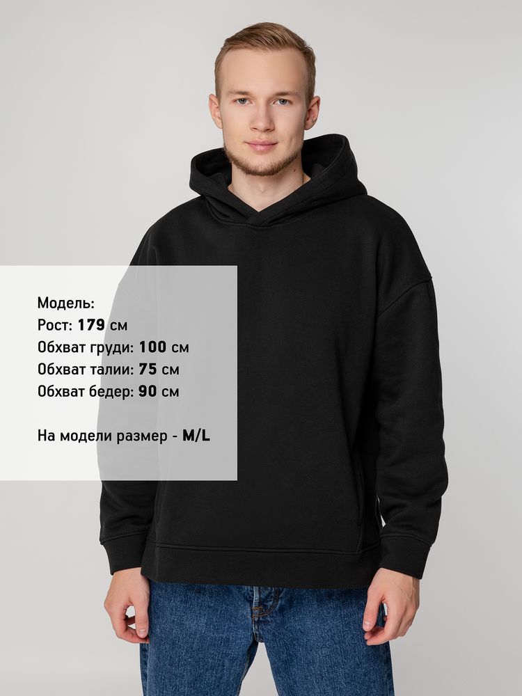 Худи унисекс оверсайз со спущенным плечом и внутренним карманом-кенгуру. Капюшон на подкладке из основной ткани Таблица размеров, см XS/S M/L XL/2XL...