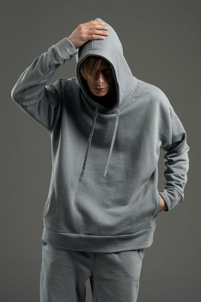 Худи унисекс свободной посадки со спущенным плечом.