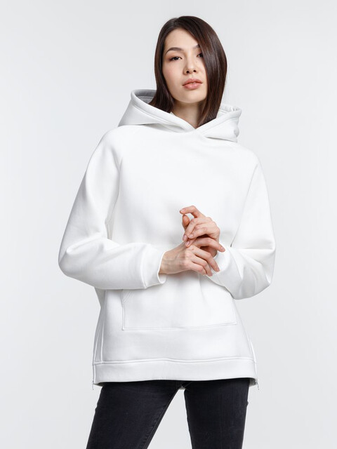 Худи унисекс удлиненного силуэта с молниями в боковых швах.