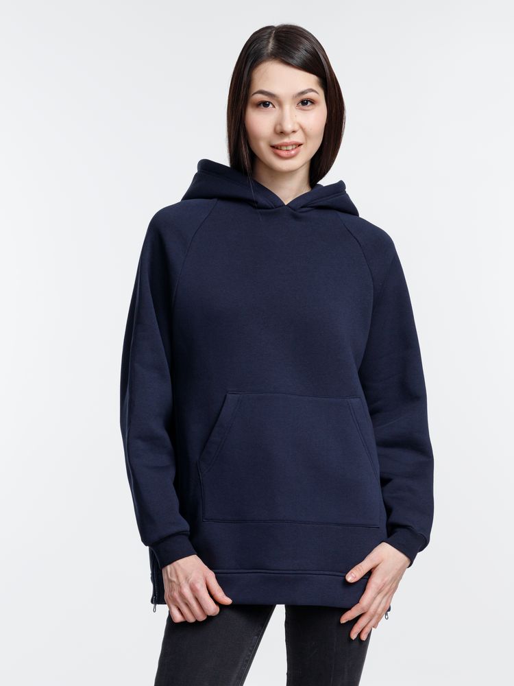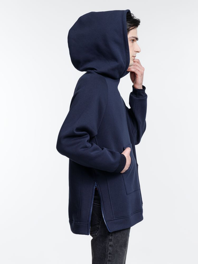 Худи унисекс удлиненного силуэта с молниями в боковых швах.