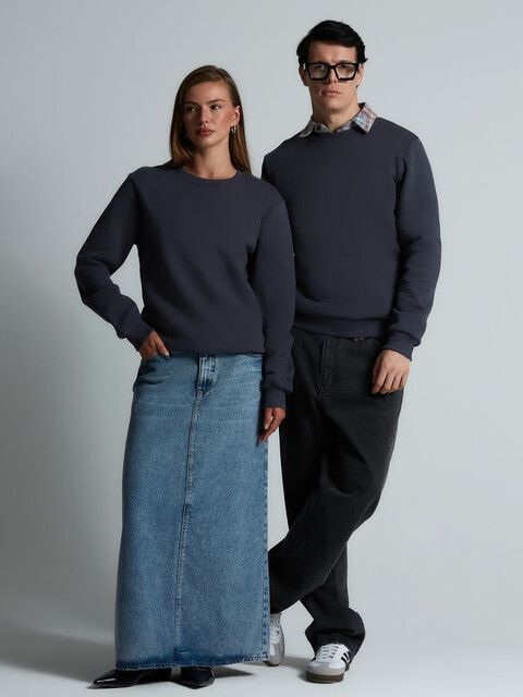 Теплый базовый свитшот унисекс. В шве горловины — только бирка с размером, что позволяет вам нанести свой логотип, а также расширяет возможности кастомизации.