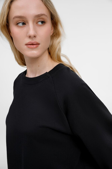 • Горловина по рукаву — реглан выполнена резинкой 2х2, а спереди и сзади — из основного полотна
