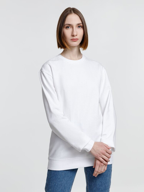 Свитшот унисекс из хлопка и переработанного полиэстера с круглым вырезом и втачным рукавом.