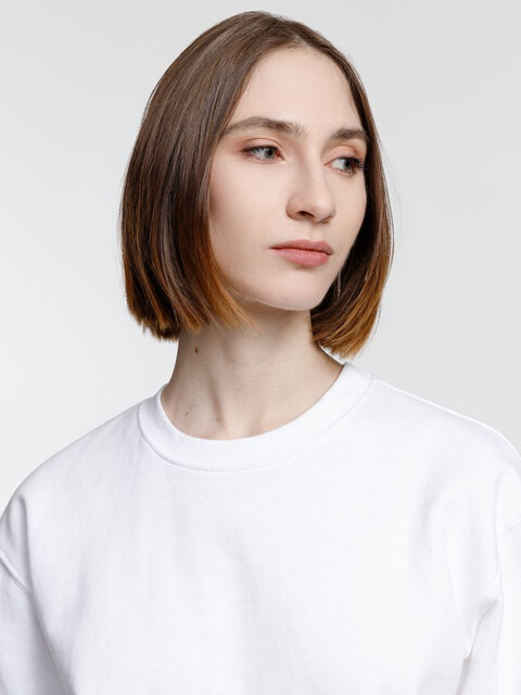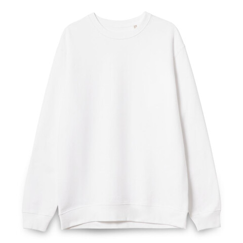 Свитшот унисекс из хлопка и переработанного полиэстера с круглым вырезом и втачным рукавом.