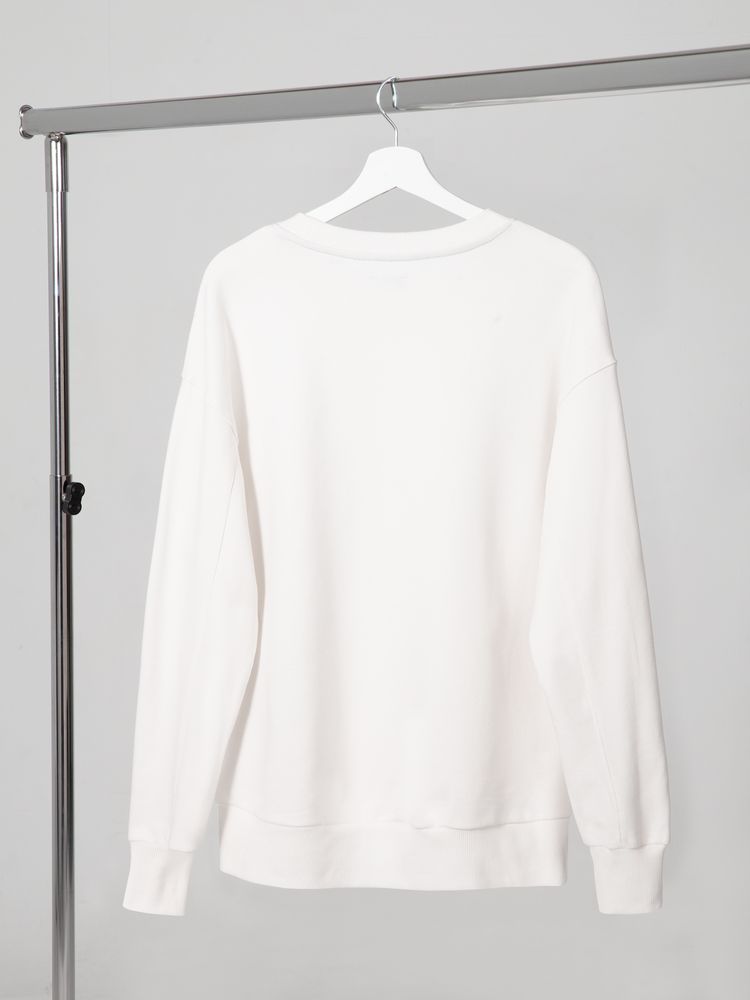 Свитшот унисекс свободного кроя со спущенным плечом. Внутренняя сторона без начеса.