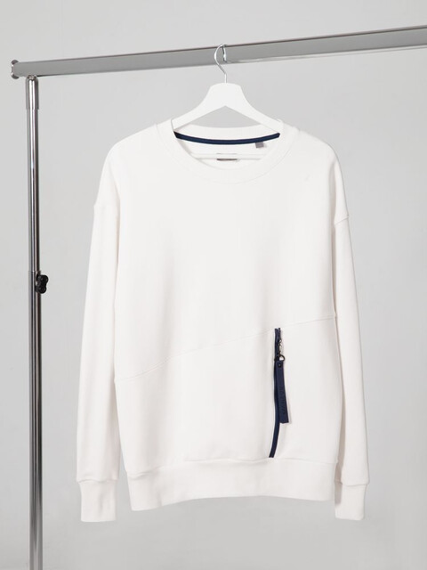 Свитшот унисекс свободного кроя со спущенным плечом. Внутренняя сторона без начеса. Нестандартный передний карман на молнии, размер 25х37 см Таблица...