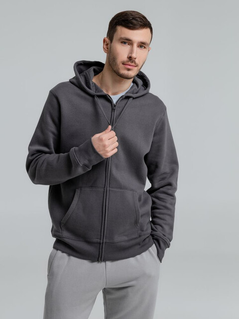 Толстовка на молнии с капюшоном унисекс King, темно-серая