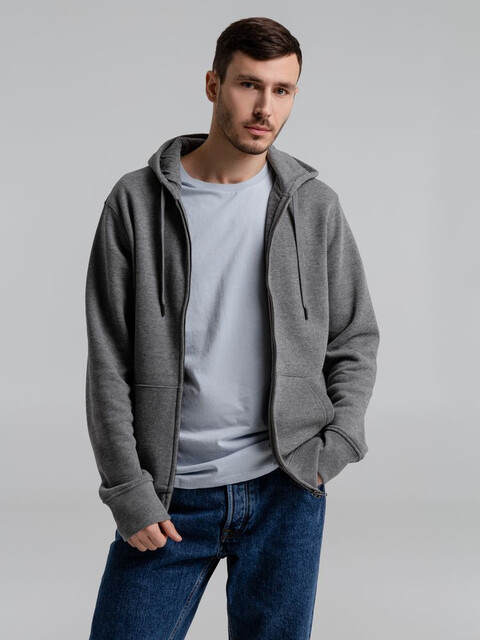 Толстовка на молнии с капюшоном унисекс King, темно-серый меланж