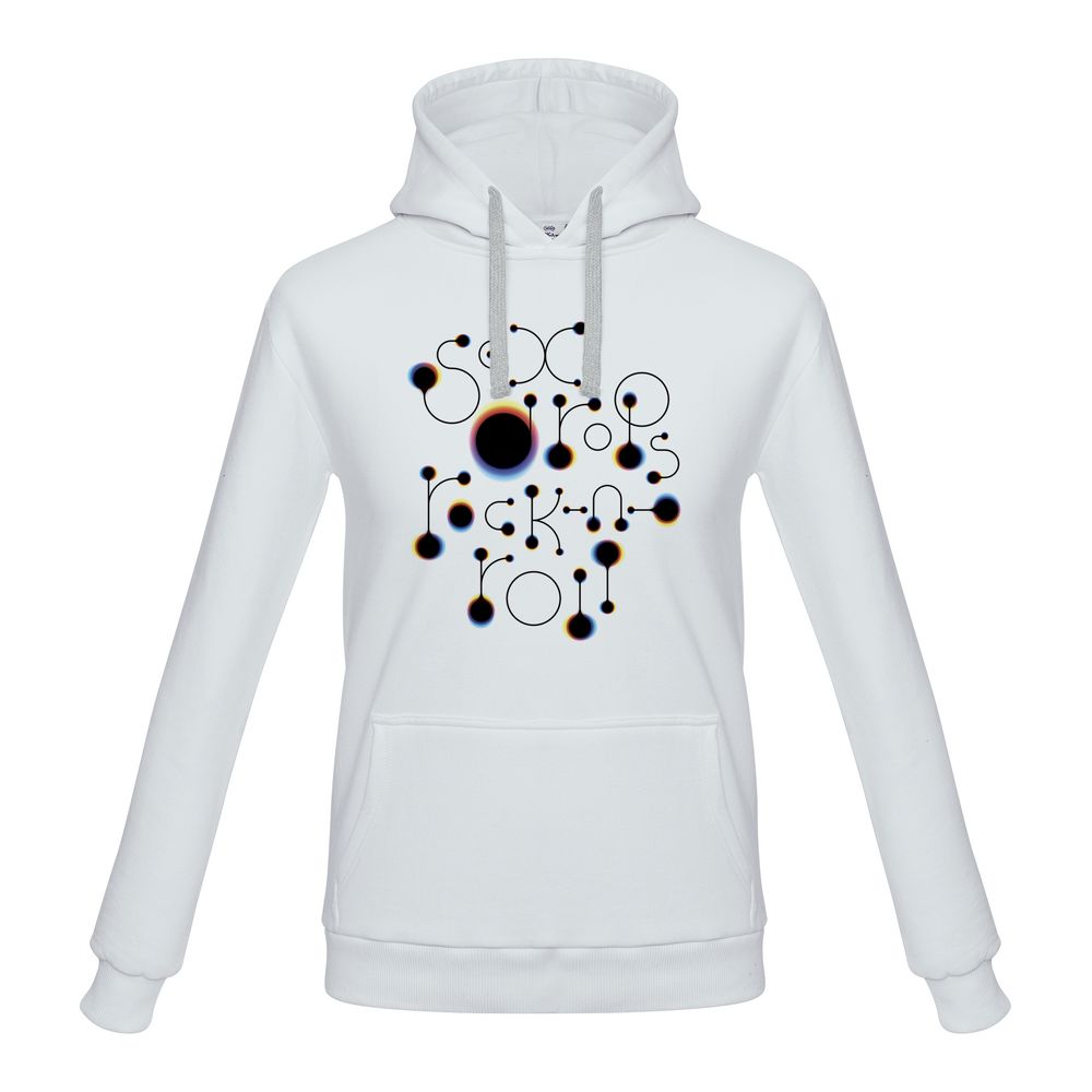 «Принтэссенция» поддерживает здоровый образ жизни: рок-н-роллить вполне можно и без запрещенных веществ! А кайф и радость жизни пусть передаются воздушно-капельным путем.Теплая толстовка с капюшоном и карманом-кенгуру.