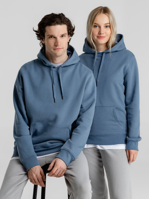 Толстовка с капюшоном унисекс King, серо-синяя