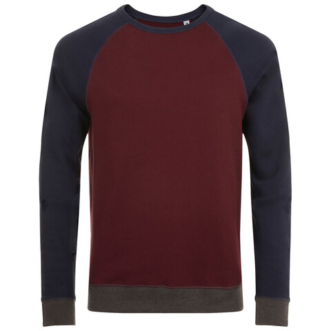 Трехцветный свитшот в стиле 80-х с рукавом реглан. Лейбл производителя в боковом шве изнутри, в шве горловины — только бирка с размером, что позволяет вам нанести свой логотип.