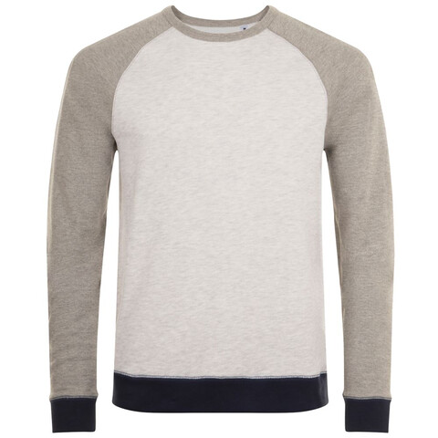 Трехцветный свитшот в стиле 80-х с рукавом реглан. Лейбл производителя в боковом шве изнутри, в шве горловины — только бирка с размером, что позволяет вам нанести свой логотип.