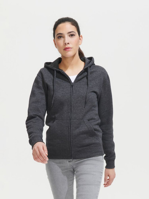 Женская толстовка на молнии с капюшоном.