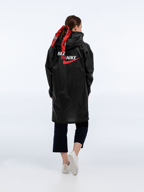 Коллекция «Антимерч» — это дружественный оммаж на известные бренды, которые способны обретать новые смыслы, если их немного подсолить иронией.Плащ-дождевик из ткани таффета на молнии с капюшоном. Складывается в мешочек — удобно брать с собой.