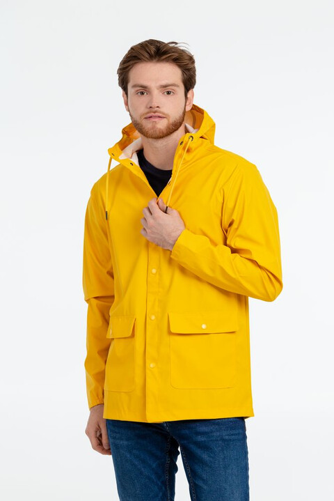 Стильный и практичный дождевик на кнопках из матового водонепроницаемого и ветрозащитного материала. Благодаря сварке ультразвуком швы абсолютно водостойкие. Карманы защищены от дождя накладными клапанами.
