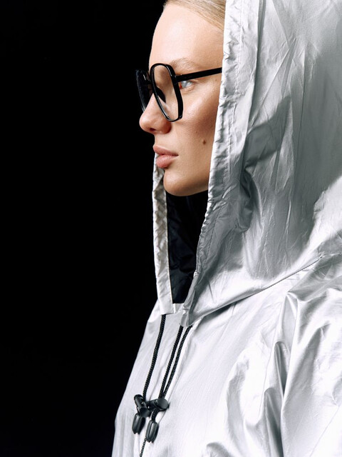 Плащ-дождевик из ткани таффета на молнии с капюшоном. Складывается в мешочек — удобно брать с собой.