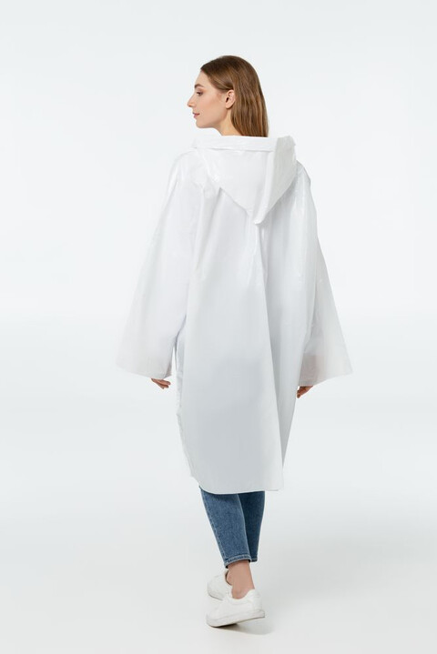 Дождевик-плащ с капюшоном и длинными рукавами из полиэтилена высокого давления (ПВД).