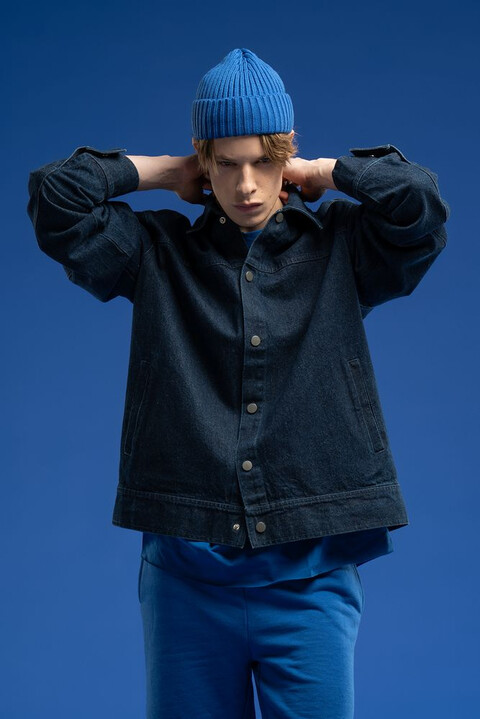 Джинсовая куртка унисекс на кнопках свободной посадки.