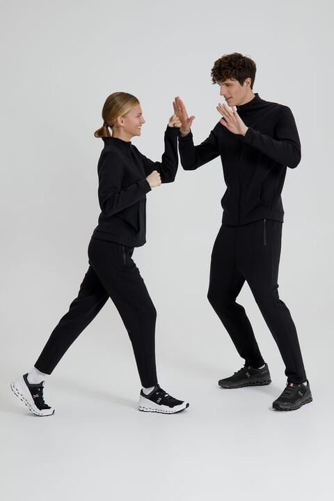 Коллекция текстиля Manevr Sport с продуманным анатомическим кроем выполнена из высокотехнологичного трехслойного материала, известного как ткань скуба или трикотажный неопрен, в самом центре которого спрятаны объемные нити текстурированного полиэстера.