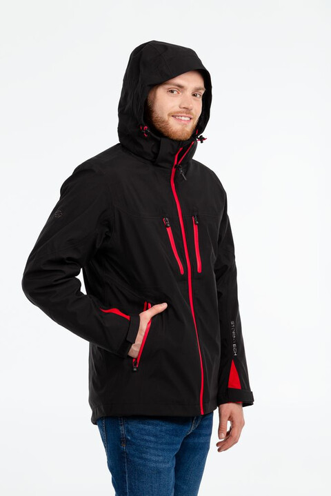 Ветровка из мембранной ткани H2Xtreme снаружи — дышит, но не пропускает влагу. Анатомический крой локтя обеспечивает максимальную свободу движений, а полностью проклеенные швы создают водозащитную капсулу. Внутренний слой — куртка с утеплителем — обладает надежной теплозащитой и удобно крепится к ветровке с помощью молний.