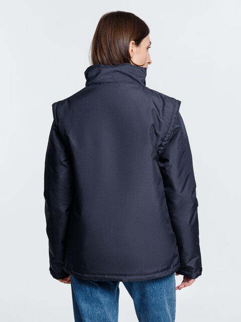Куртка-трансформер, которая превращается в утепленный жилет. Выполнена из ткани оксфорд с водоотталкивающим покрытием. Модель унисекс.