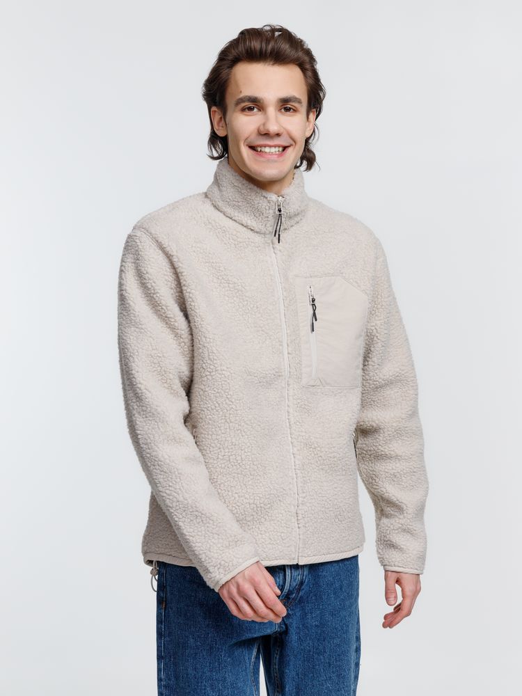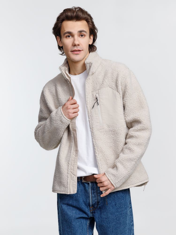 Куртка унисекс из фактурной искусственной шерпы с гладкой отделкой из таслана.