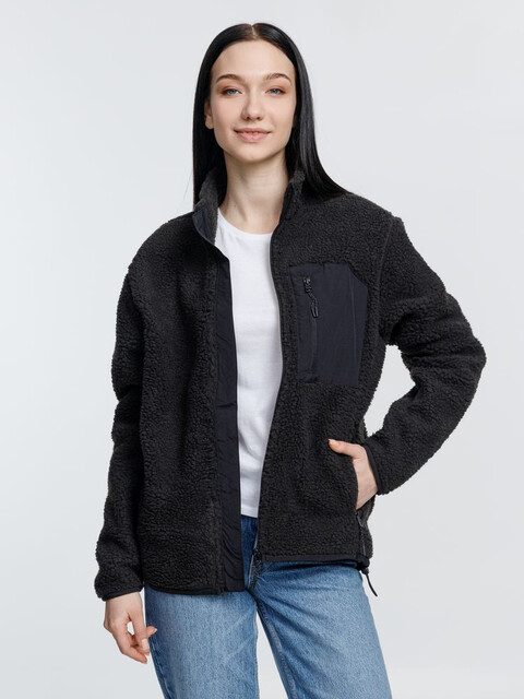 Куртка унисекс из фактурной искусственной шерпы с гладкой отделкой из таслана.