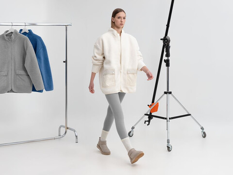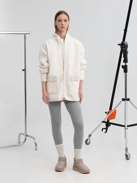 Куртка на молнии из современного двухслойного материала — модный искусственный мех снаружи и уютный флис внутри. Накладные карманы из гладкого нейлона создают заметный визуальный контраст и делают куртку Oblako по-настоящему стильным предметом гардероба.