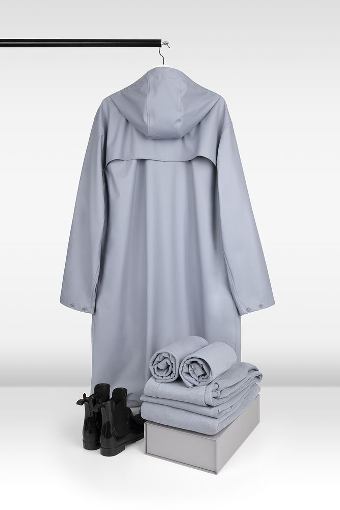 Плащ-дождевик с капюшоном из полиэстера с полиуретановым непромокаемым покрытием.