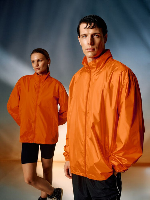 Тонкая гладкая ткань дюспо с притягательным матовым блеском почти бесшумна в использовании и пригодна для большого количества цветов печати. Качественный пошив ветровки добавляет ей презентабельности и гарантирует долгое использование, а яркий цвет привлекает внимание и не выгорает со временем.