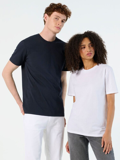 Футболка унисекс с боковыми швами из переработанных материалов. Для изготовления каждой футболки переработано 4 бутылки, из которых в последствии была сделана полиэстеровая пряжа.