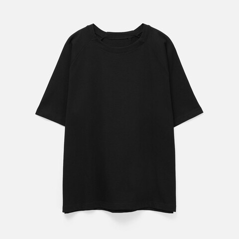 Футболка унисекс свободного кроя с круглым воротом.