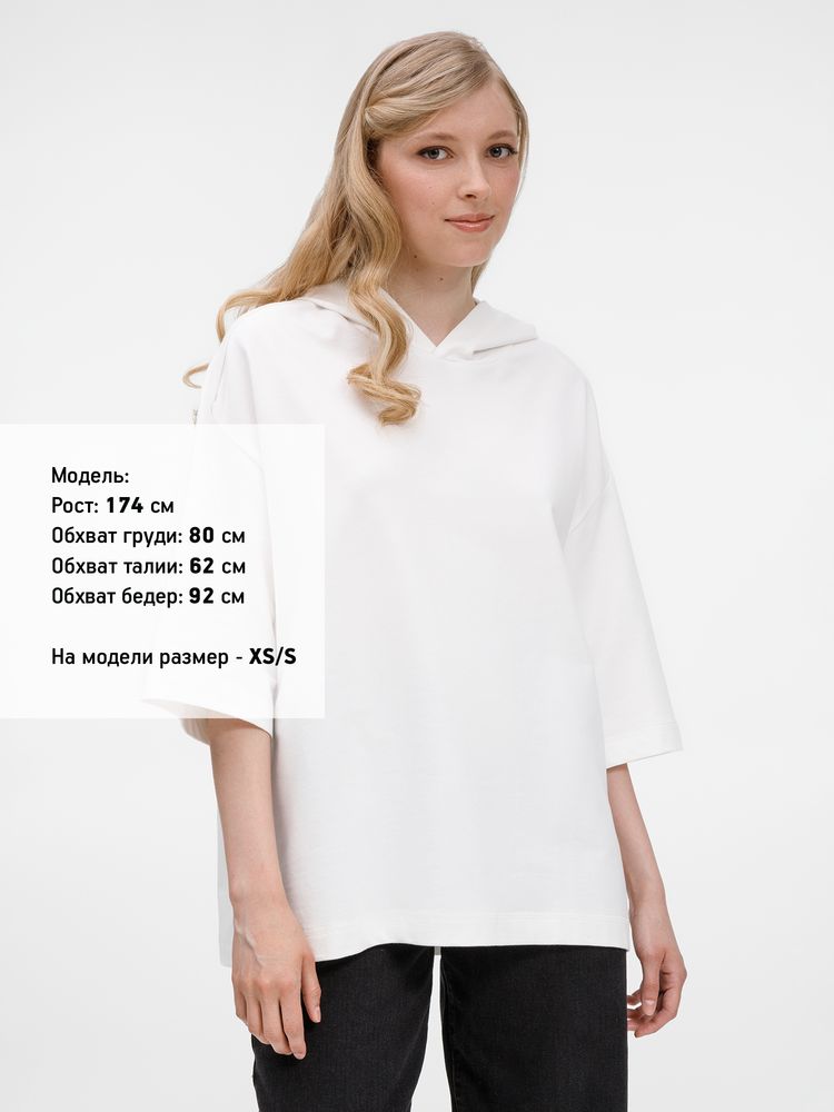 Футболка оверсайз унисекс с капюшоном Neofit, молочно-белая