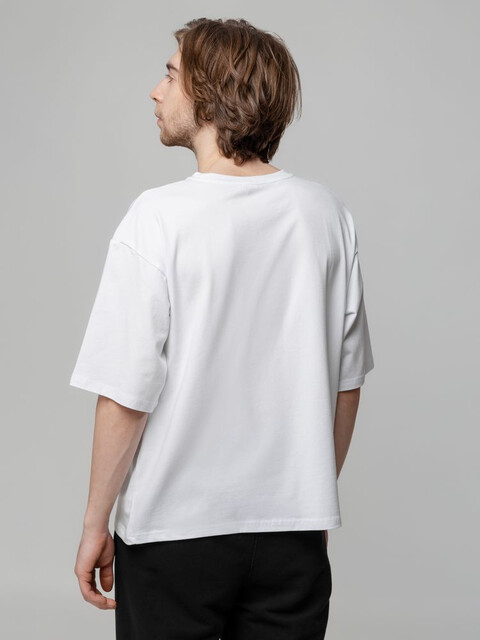 Футболка унисекс свободного кроя с боковыми швами. Благодаря тонким и длинным волокнам хлопка ткань футболки отличается гладкостью, ровностью и прочностью, отлично сохраняет форму, не деформируется и не выцветает при стирке.