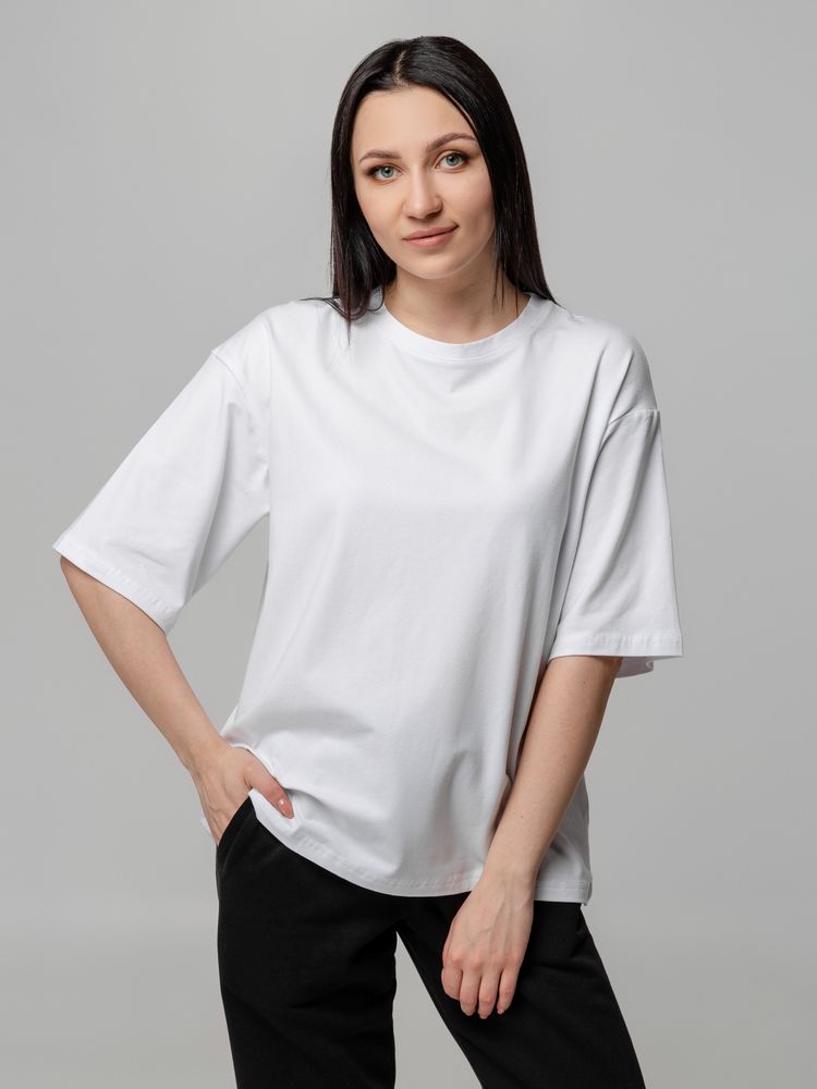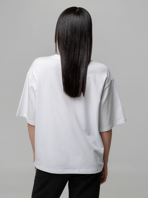 Футболка унисекс свободного кроя с боковыми швами. Благодаря тонким и длинным волокнам хлопка ткань футболки отличается гладкостью, ровностью и прочностью, отлично сохраняет форму, не деформируется и не выцветает при стирке.