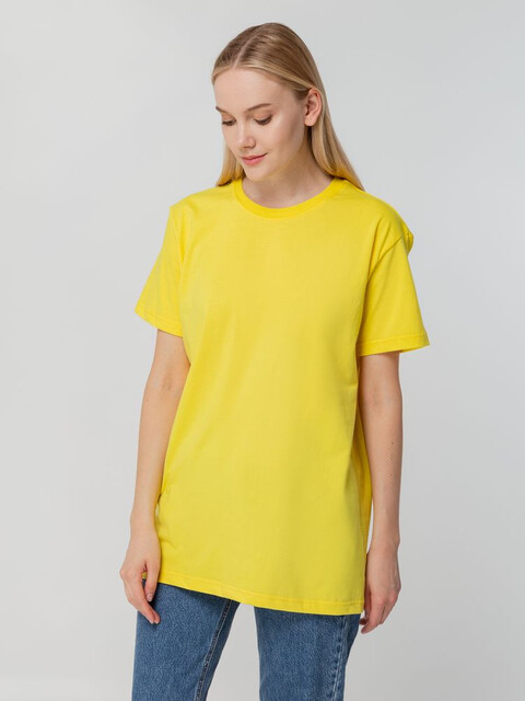 Футболка унисекс прямого силуэта без боковых швов (размеры S–4XL) или с боковыми швами (размер 5XL). Активное крашение полотна — изделие сохраняет цвет надолго.