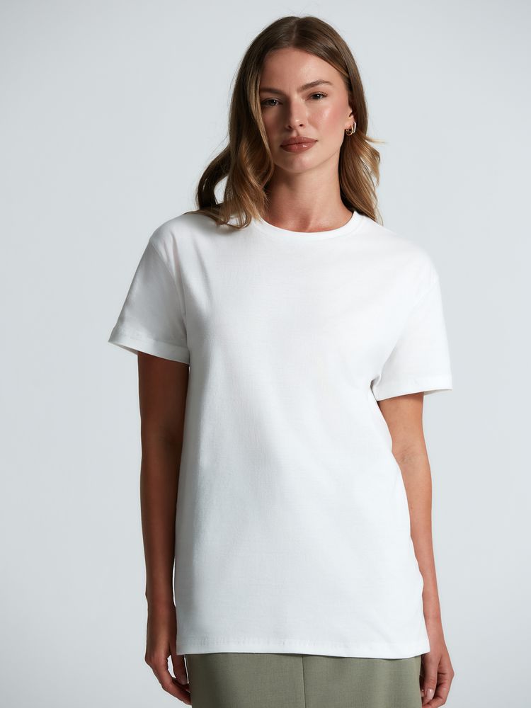 Базовая футболка унисекс прямого силуэта без боковых швов (размеры XS–4XL) или с боковыми швами (размеры 5XL–6XL).