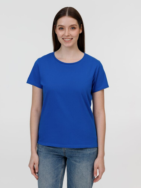 Кроеная женская футболка приталенного силуэта с круглым воротом. Вырез отделан резинкой 1х1. Полотно прошло предварительную усадку. Таблица размеров, см...