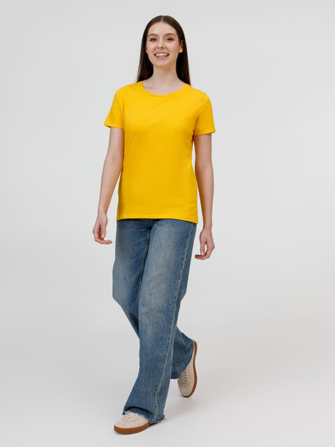 Кроеная футболка приталенного силуэта с круглым вырезом. Вырез отделан резинкой 1х1. Полотно прошло предварительную усадку. Таблица размеров, см XS...