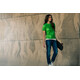 Женская футболка с уплотненными швами на плечах и двойным швом с эластаном. Четырехслойная резинка на воротнике предохраняет его от растяжения.