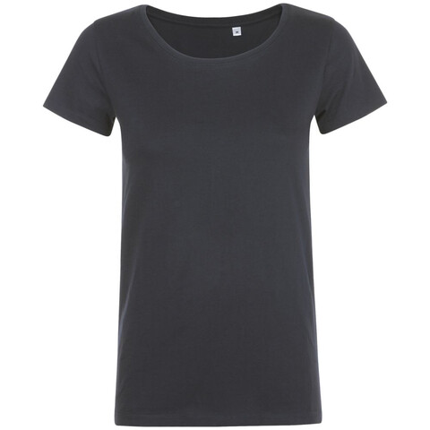 Приталенная кроеная футболка с женственной круглой горловиной. Ворот в тонкую резинку с укрепляющей тесьмой.