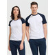 Кроенная футболка с рукавом реглан. Укрепляющая тесьма по вороту, край круглого ворота связан резинкой с эластаном.