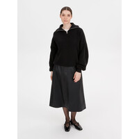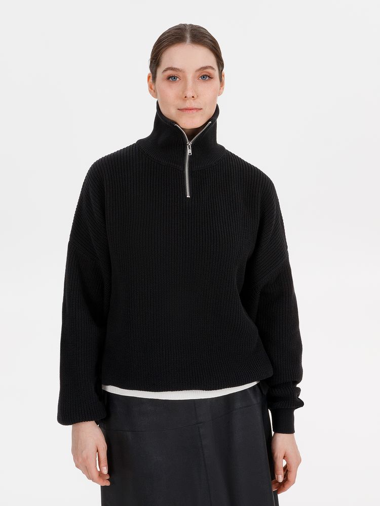 Siluetti Birne — плотный джемпер фактурной вязки со спущенной линией плеча позволит добавить в силуэт мягких линий и ненавязчивого объема, а также создать современный модный образ в лаконичном актуальном стиле, отдав при этом дань беспроигрышной классике. Дополнительным акцентом служит высокая горловина на молнии, а широкая резинка на рукавах и по нижнему краю изделия гарантирует максимальный комфорт.