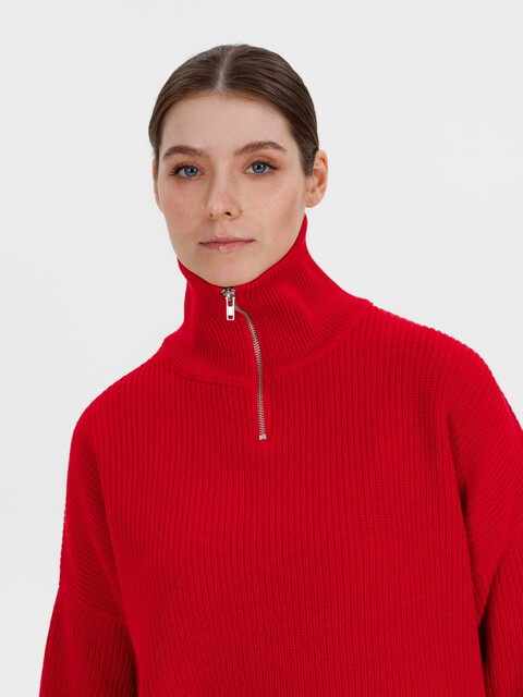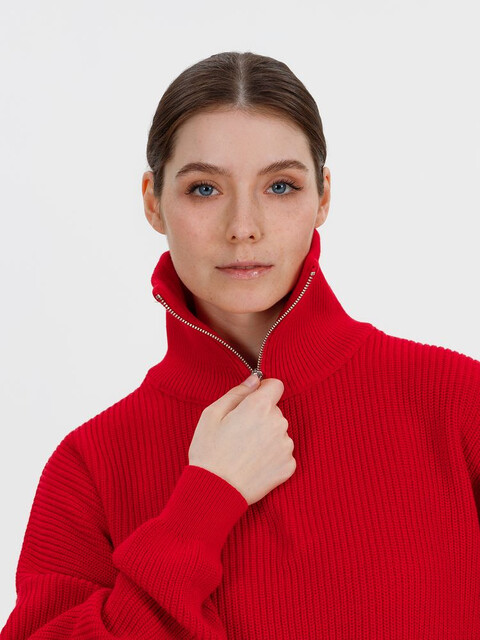 Siluetti Birne — плотный джемпер фактурной вязки со спущенной линией плеча позволит добавить в силуэт мягких линий и ненавязчивого объема, а также создать современный модный образ в лаконичном актуальном стиле, отдав при этом дань беспроигрышной классике. Дополнительным акцентом служит высокая горловина на молнии, а широкая резинка на рукавах и по нижнему краю изделия гарантирует максимальный комфорт.