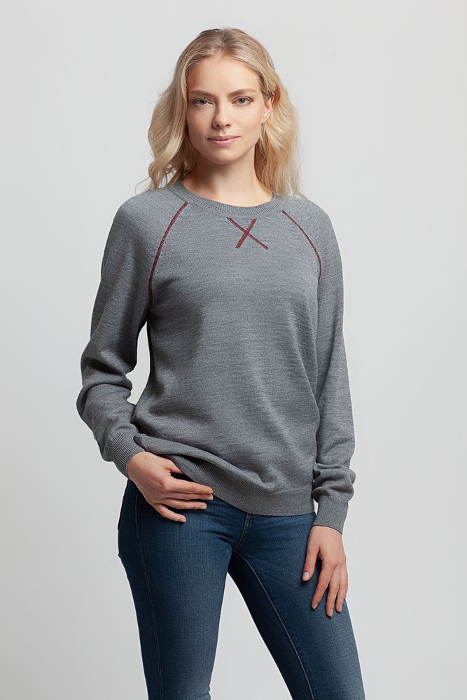 Джемпер Stitch с контрастной отделкой, серый с бордовым