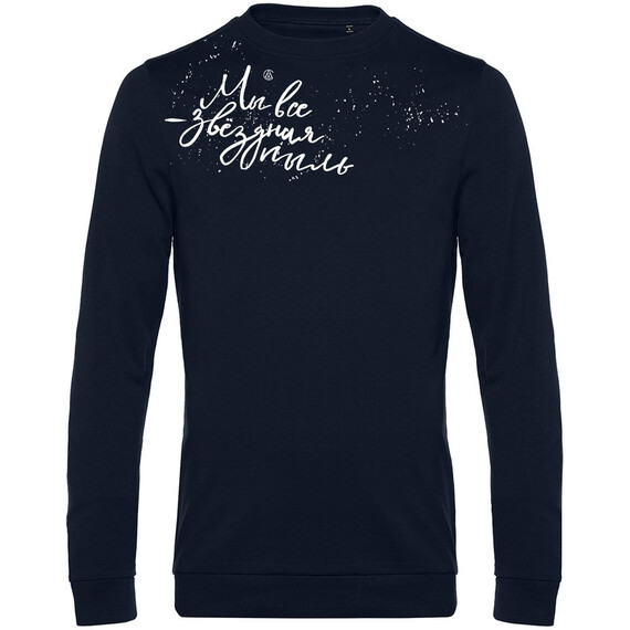 Когда проблемы кажутся нам большими, можно вспомнить, что мы и наша жизнь – всего лишь песчинки на фоне Вселенской бесконечности. Пролетаем на голубом шаре сквозь космос, а сами состоим из звездной пыли, как и все вокруг. С одной стороны — это напоминает, что все бренно и преходяще, с другой стороны — дарит чувство единства со всем окружающим – ведь звезды взорвались, чтобы мы жили.Классический кроеный свитшот унисекс. Манжеты, ворот и низ изделия отделаны резинкой. Внутренняя сторона без начеса.
