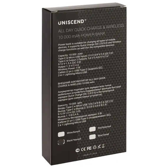 Аккумулятор Uniscend All Day Quick Charge & Wireless 10 000 мАч сконструирован с учетом последних требований мира электроники: