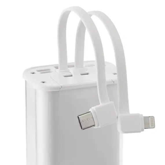 – Тype-C, Lightning (кабели): 5 В, 2 А; USB-А QC, Type-C QC и PD (на корпусе): 5 В, 2 A; 9 В, 2 A/12 В, 1,5 A - Время зарядки: до 3 часов при использовании зарядного устройства с разъемом Type-C и поддержкой функции QC 3.0
