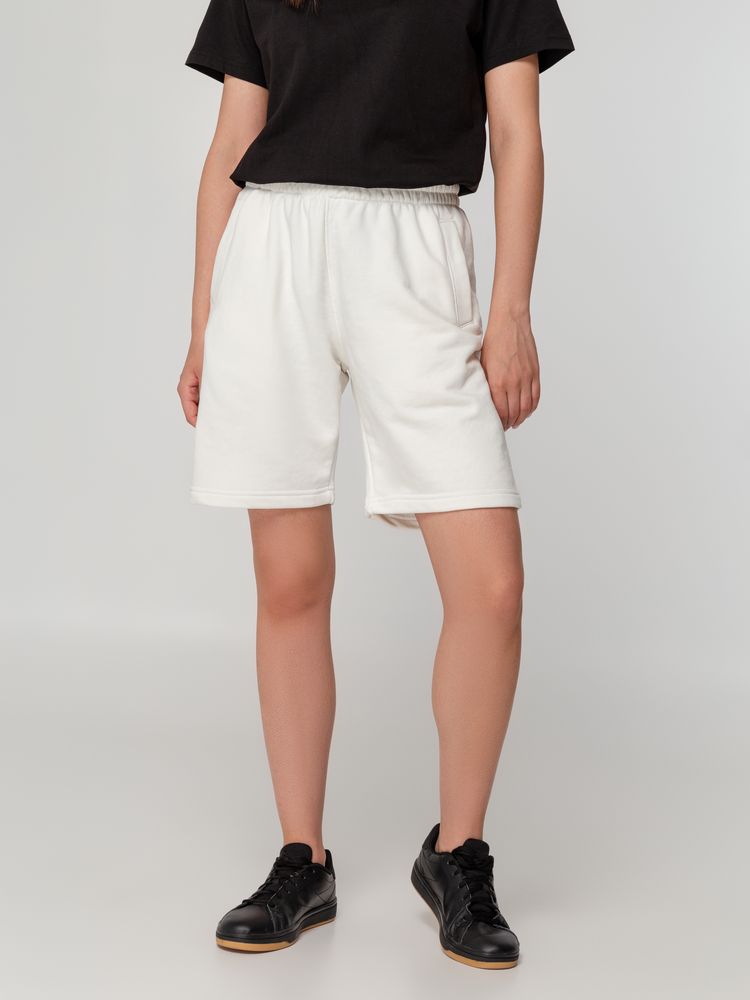 Шорты Terry свободного силуэта, поэтому не облегают фигуру; широкая резинка на талии и петельная изнанка создают дополнительный комфорт.